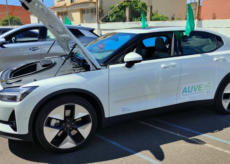 La AUVE participó con la muestra de 3 vehículos eléctricos. Un Hyundai Ioniq, cedido por el concesionario Hyundai Canarias, y dos vehículos más de miembros de la AUVE, un BMW 350e híbrido enchufable y un Nissan Leaf.