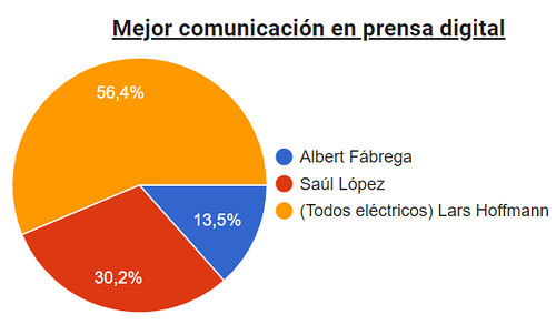 Finalista (13,5 %): Albert Fábrega. Un reportero de motor, que desde hace poco habla también de la movilidad eléctrica, mostrando sus ventajas y sus inconvenientes, de una manera muy didáctica y amena.