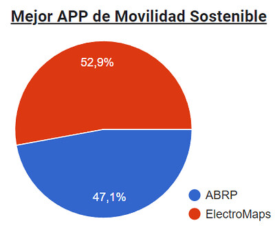Ganador (52,9 %): ElectroMaps. Por ser una de las APP más utilizadas por los usuarios, con comentarios actualizados, posibilidad de reservar, ver disponibilidad, etc.